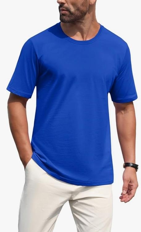 Our No Fade Royal Blue Plain Round Neck T-shirt features a Double-layer High-density Threaded Neckline And Two Needle Stitching Reinforcement; Shoulder Design: Shoulder Compression Strip And Two Needle Process, Effectively Preventing Shoulder Collapse And Deformation; Hem design: Using Elastic Thread Splicing, With Strong Inclusiveness And Long-lasting Durability; Cuff Design: The Threaded Splicing Cuffs Are More In Line With The Skin, Without Any Binding Feeling.